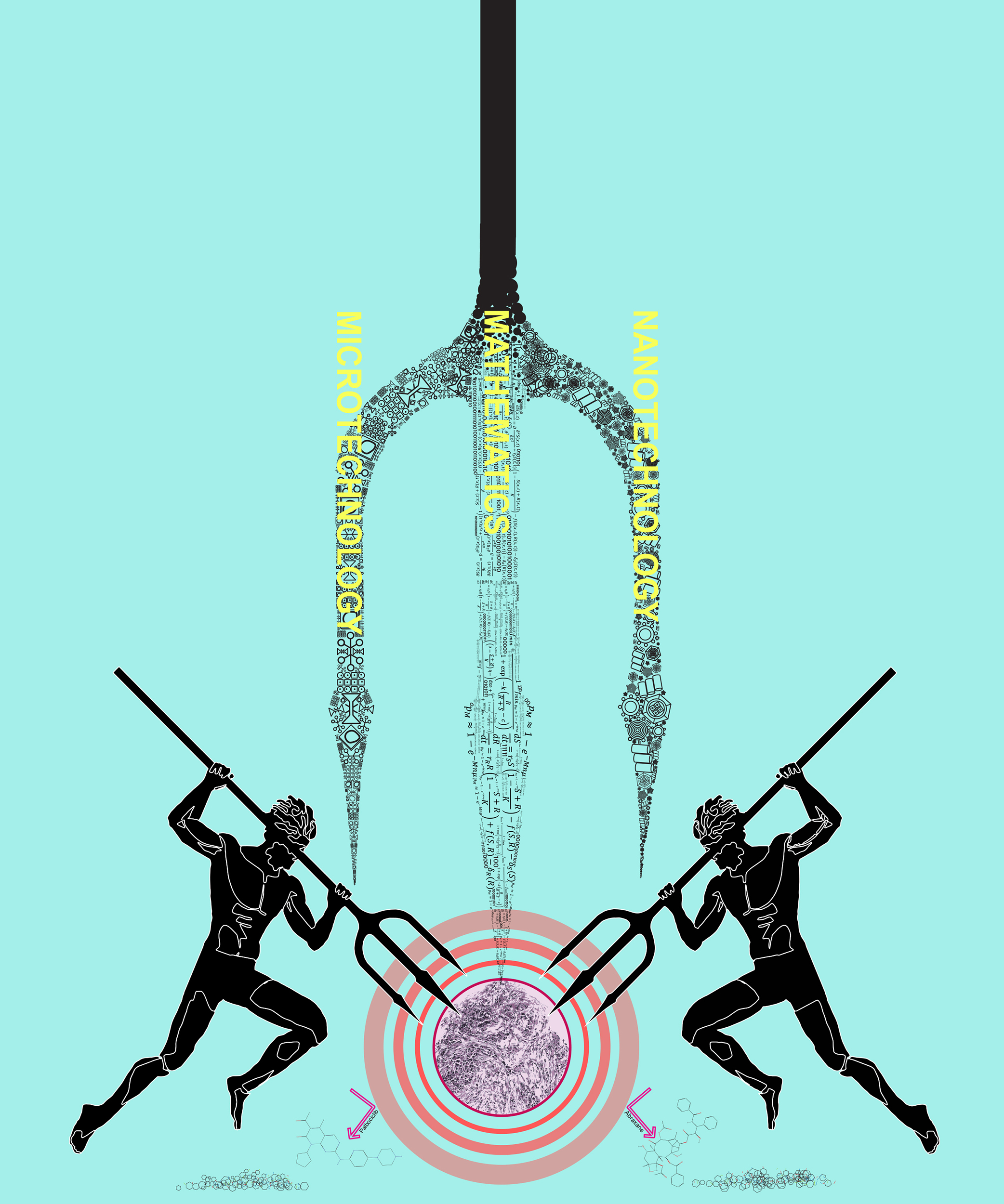 Final concept illustration. Nanotechnology, Microtechnology, and Mathematics fighting against drug resistant tumour.